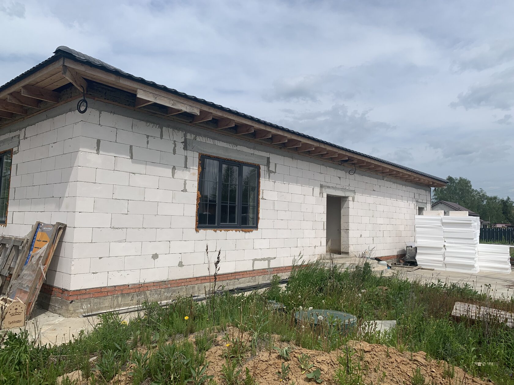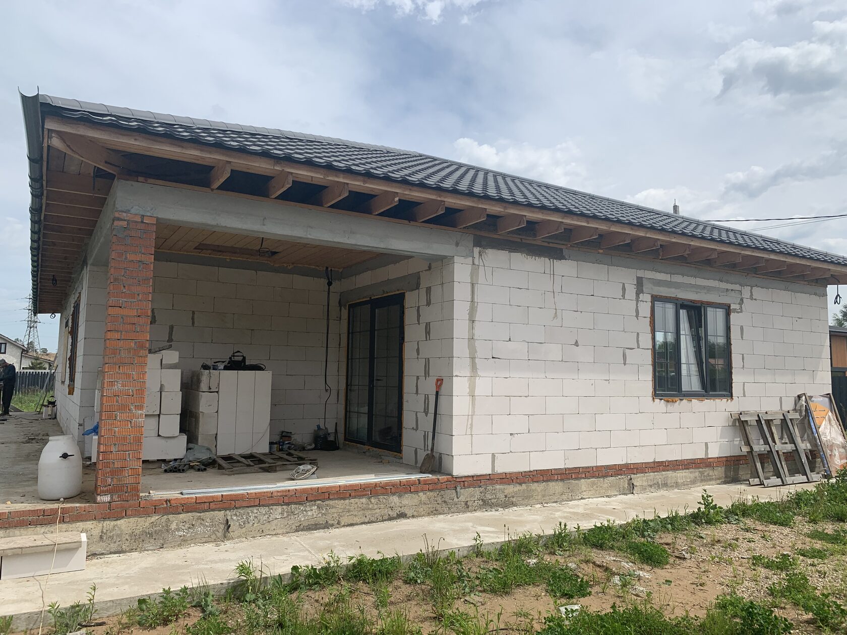 Статус при старте: дом ещё достраивался; на фото видно подготовку фасадов и сварочные работы рядом с домом (монтаж металлоконструкций).