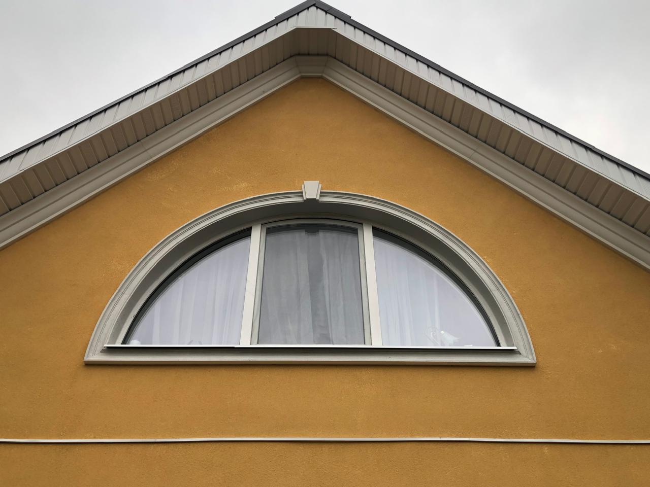 - Замер радиусов арки → выпуск индивидуальных арочных элементов под окно.