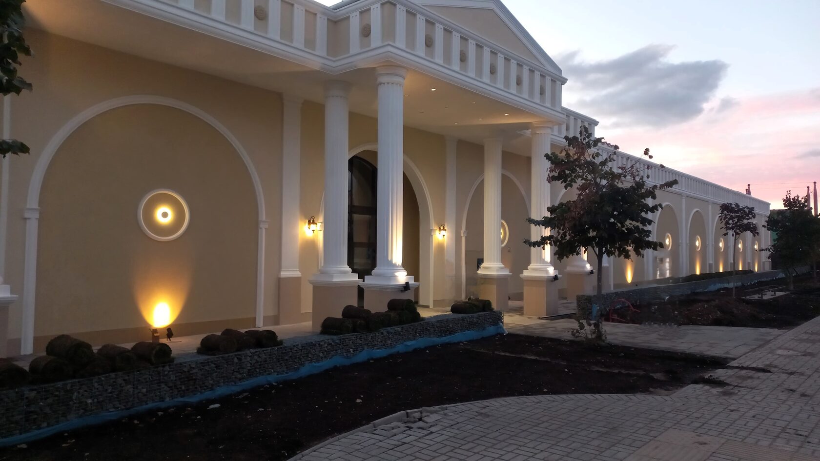 - Заказчик получил декор раньше оговорённого срока и запустил объект в срок. Вечерняя подсветка подчёркивает глубину арок и колоннад.
