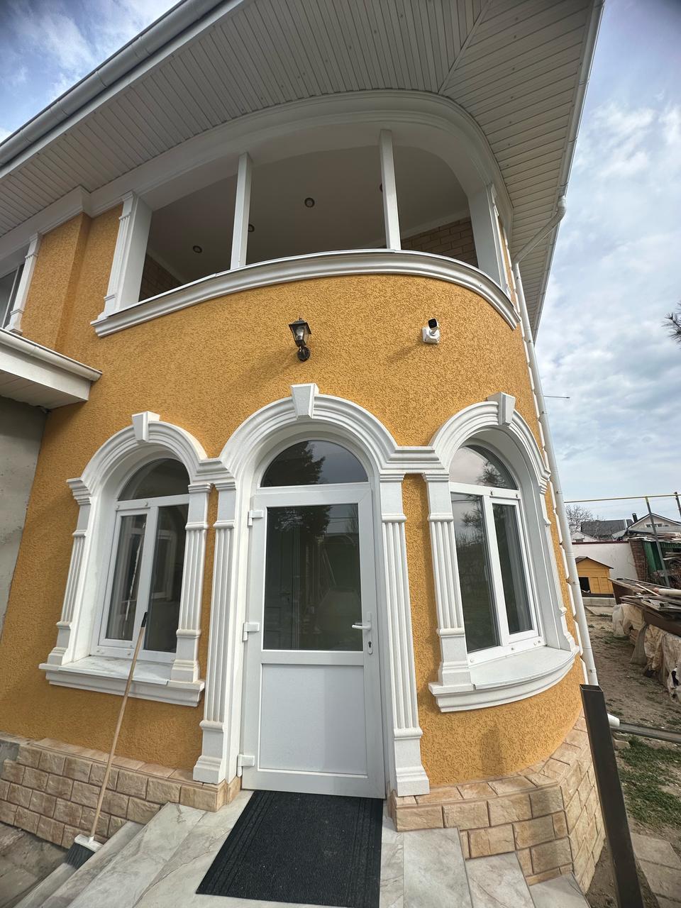 Особую сложность представлял арочный карниз окна. Его установка на радиусном угле требовала точных расчётов и аккуратного монтажа, чтобы арка органично вписывалась в общий облик фасада. В результате работы специалистов все элементы здания получили современный и эстетичный вид, сочетая в себе как техническую точность, так и художественную выразительность.