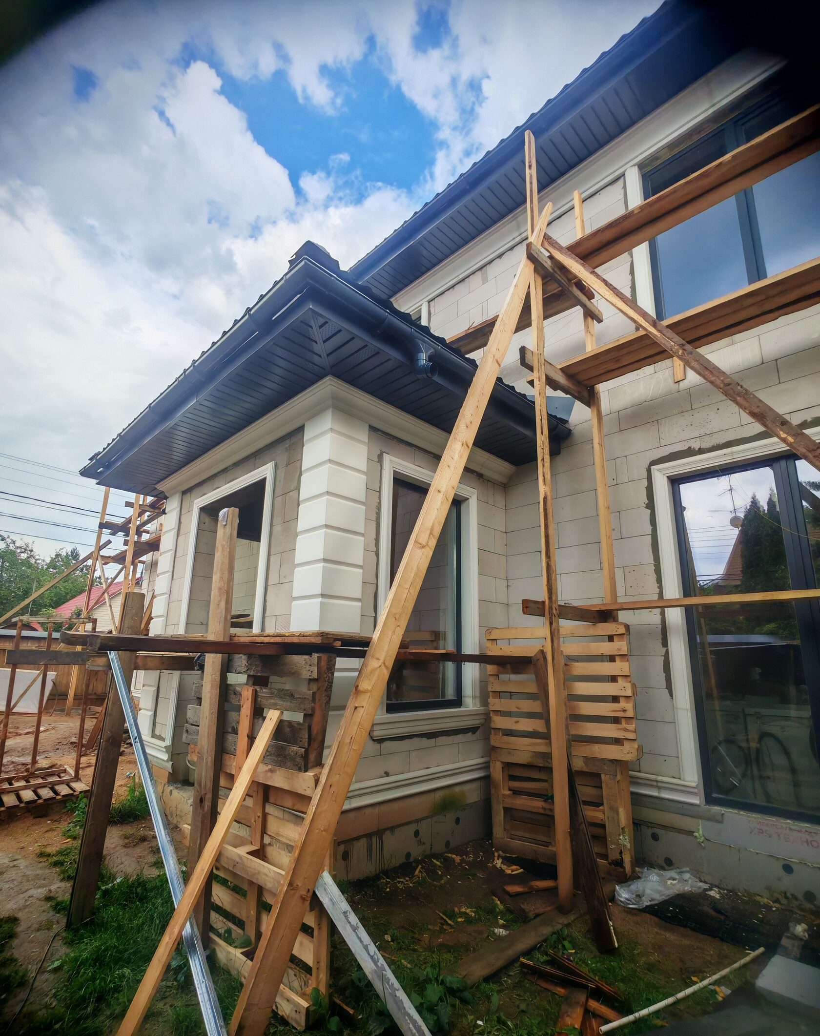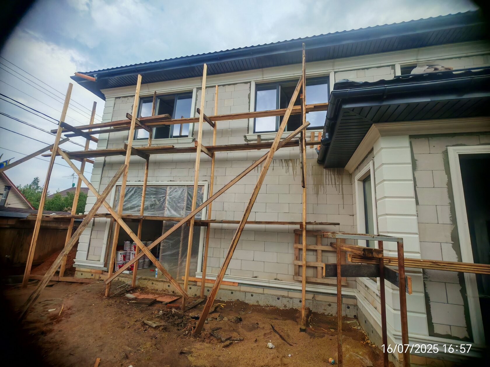 - На монтажных кадрах — леса, свежие швы и подрезки; дата: 16.07.2025.
