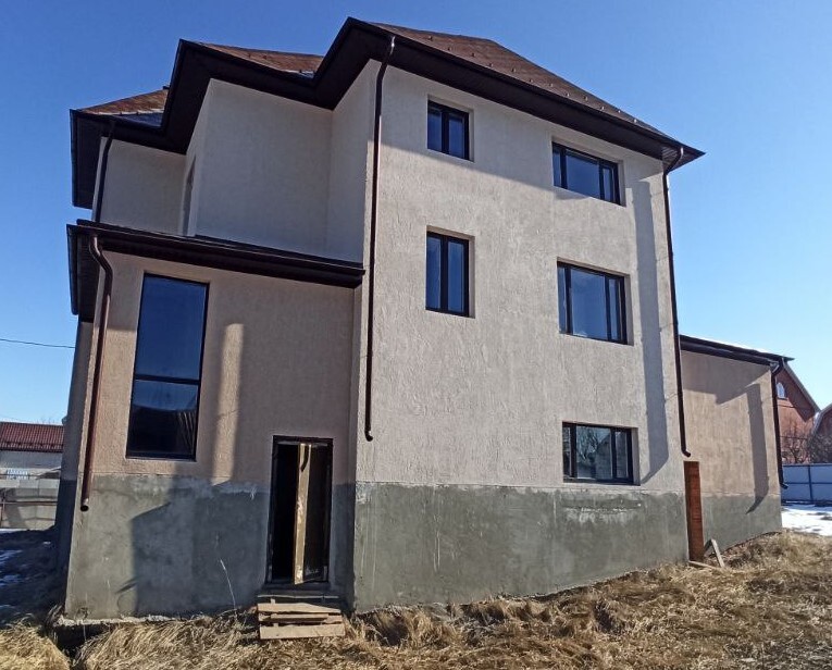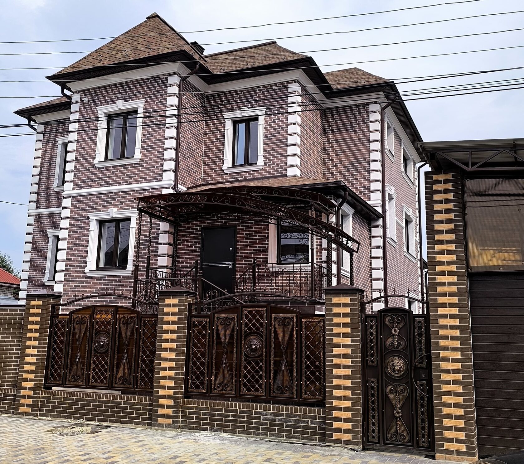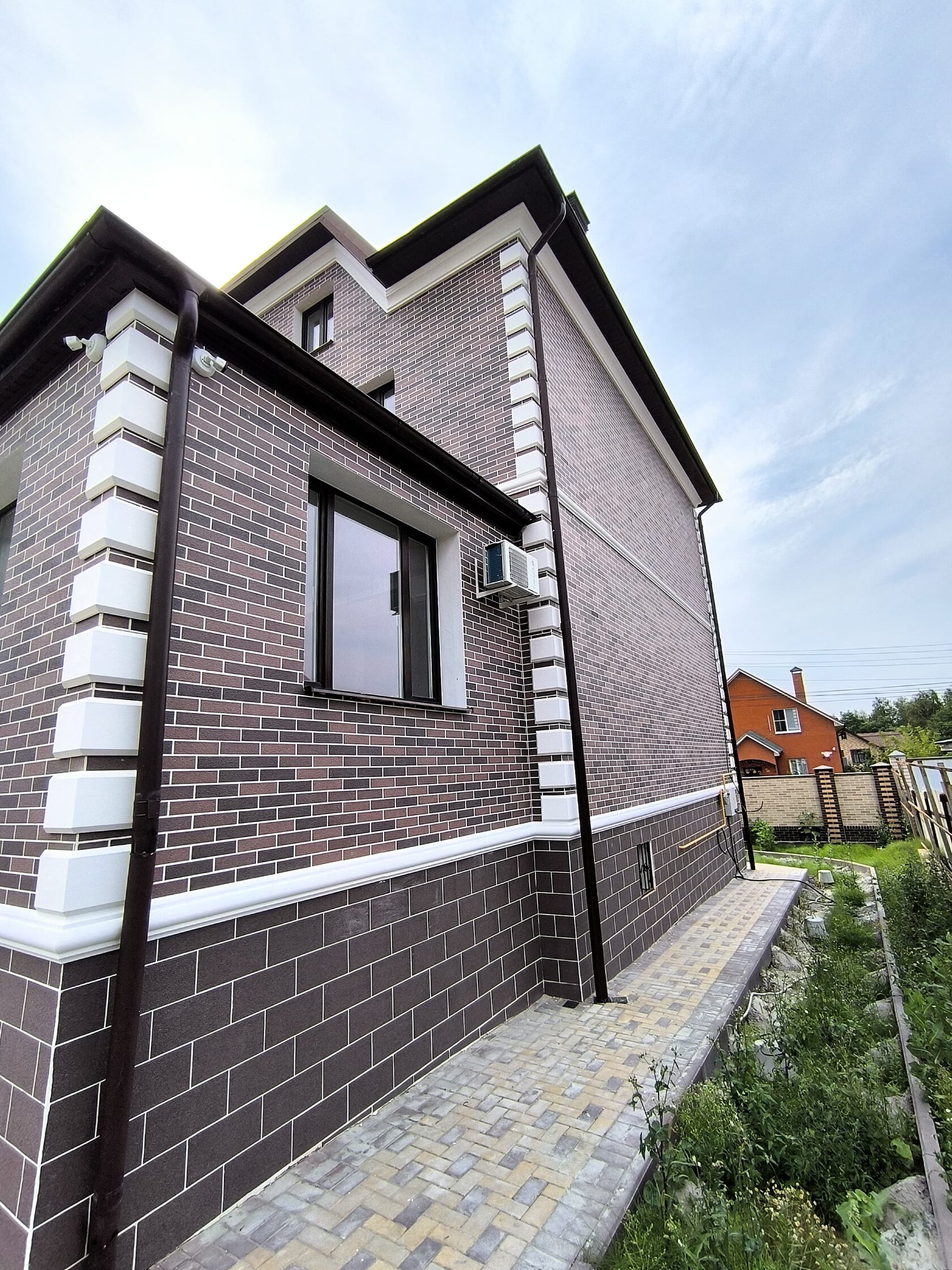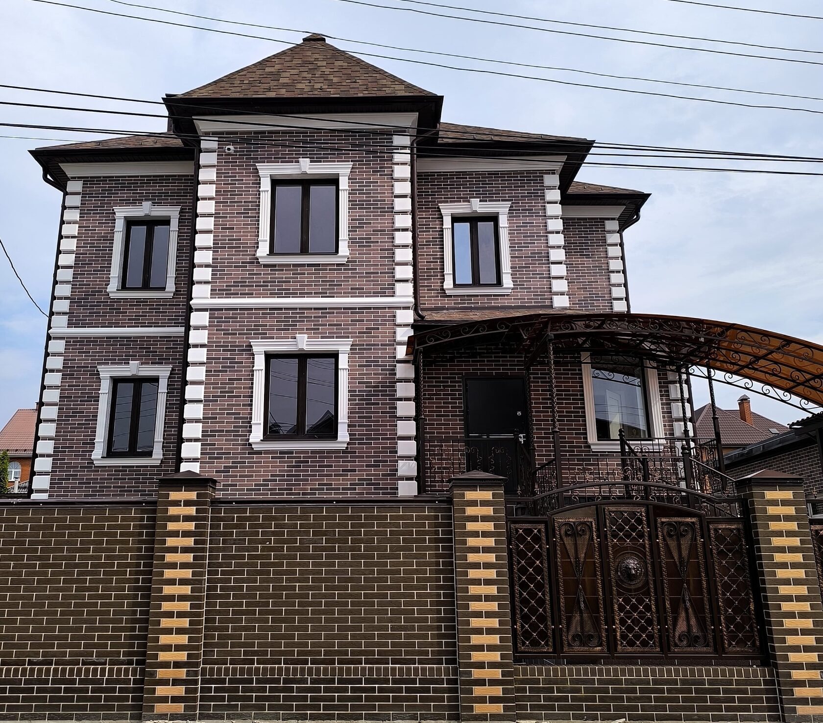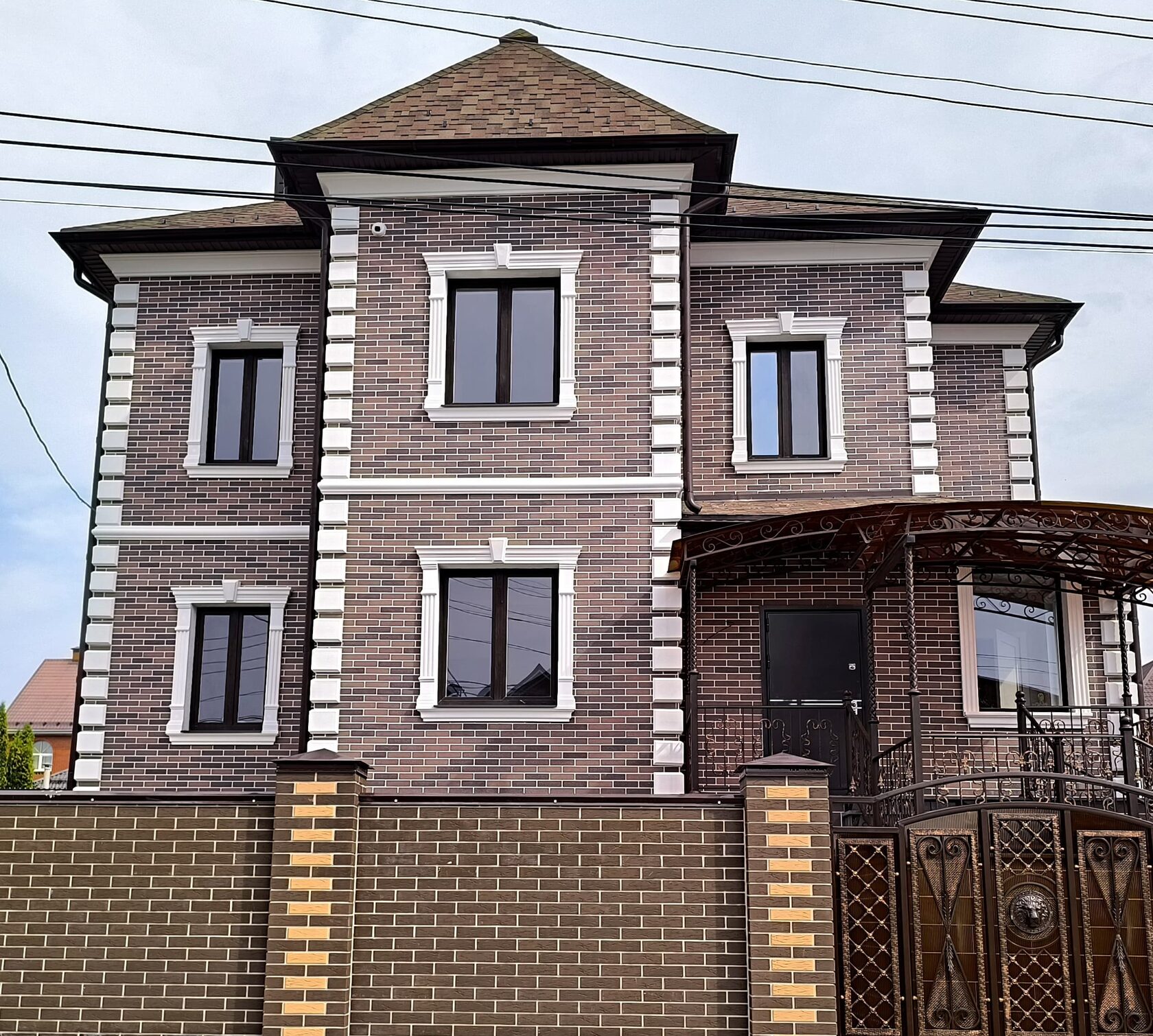 Стиль: современная классика (неоклассика): лаконичные формы, симметрия, акцент на рустах, наличниках и поясах без излишней декоративности.