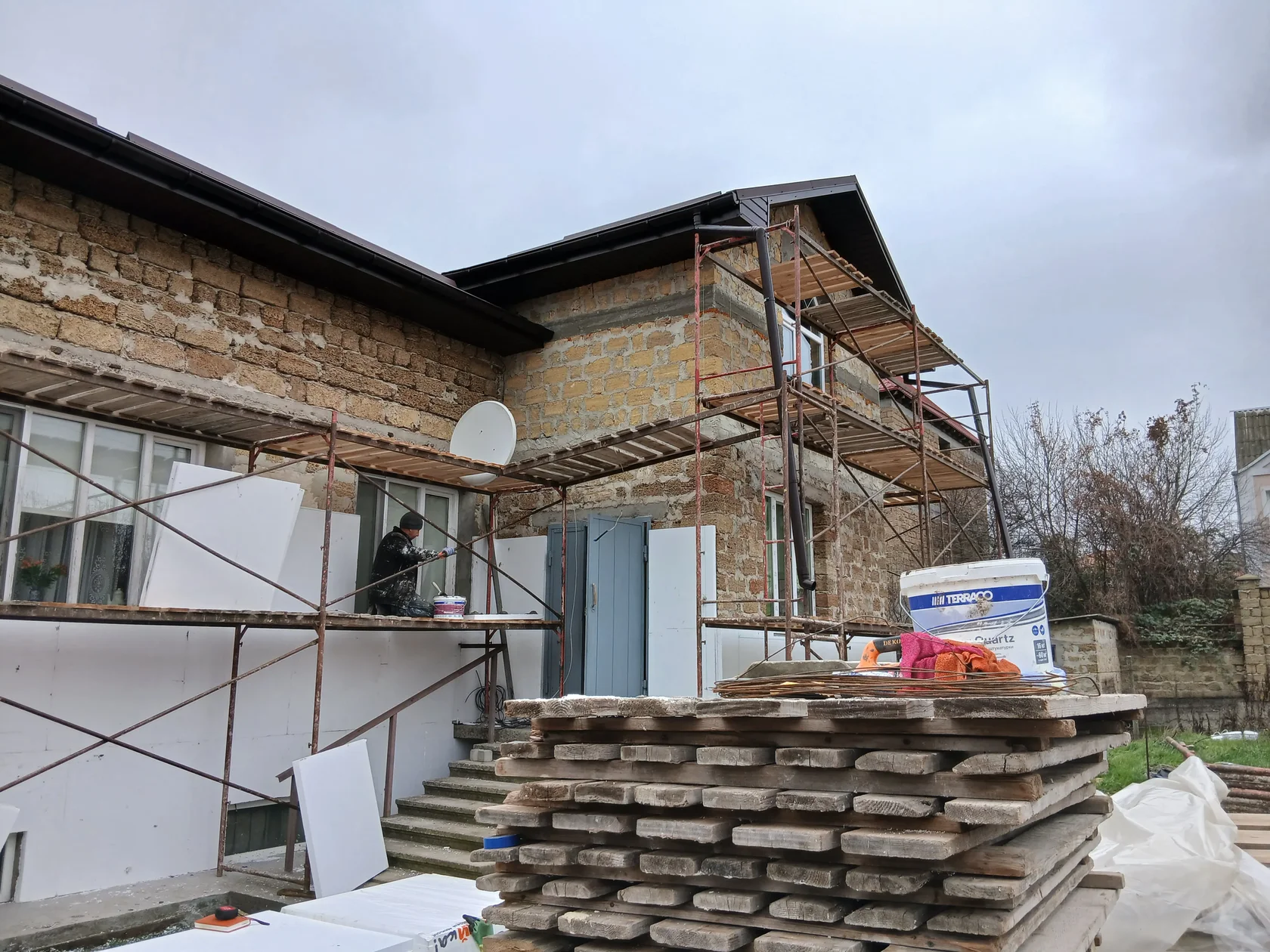 - дальше вмешалась погода: минусовая температура не дала завершить объект быстро (это нормальная реальность для финишных фасадных процессов зимой)