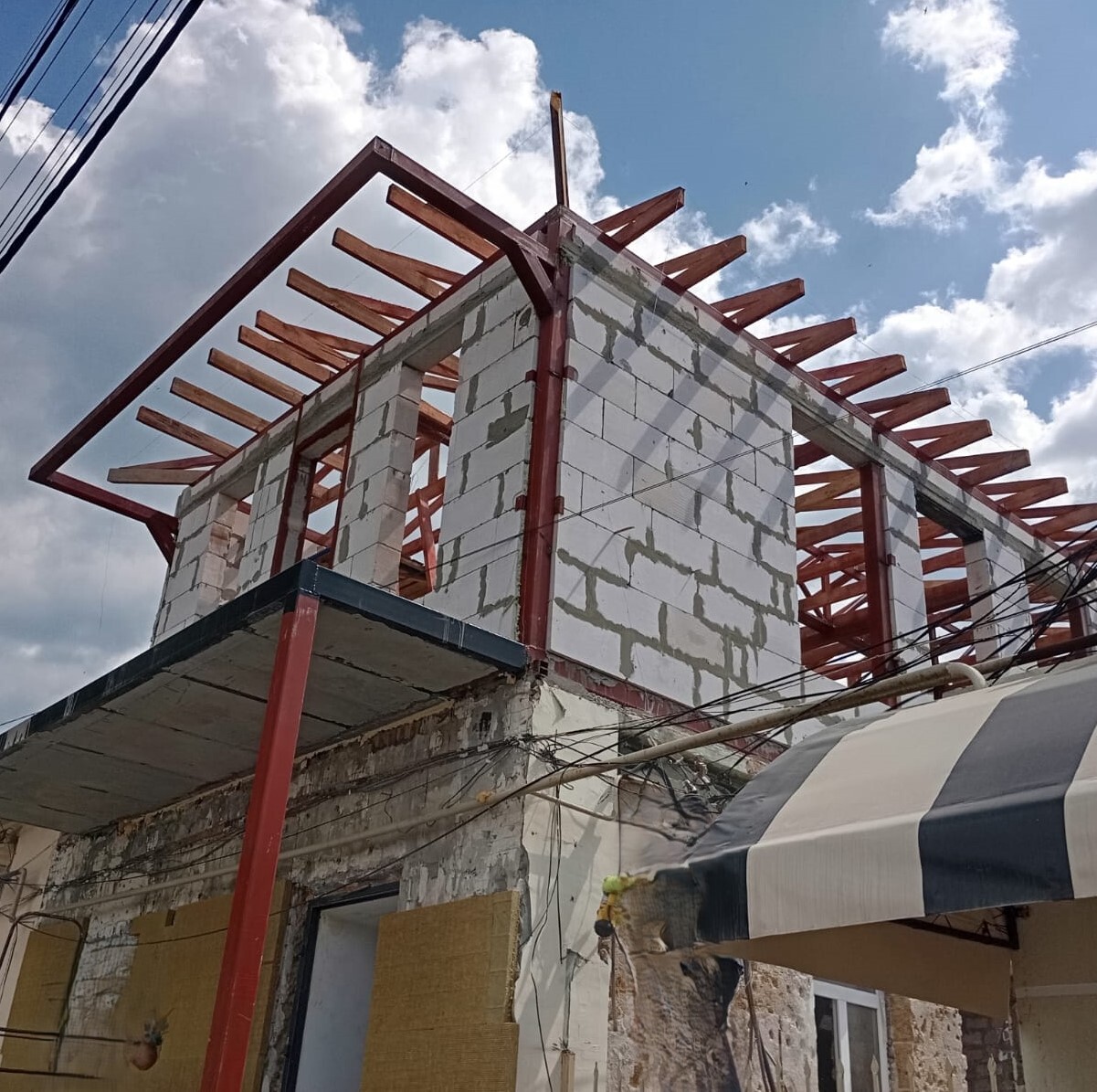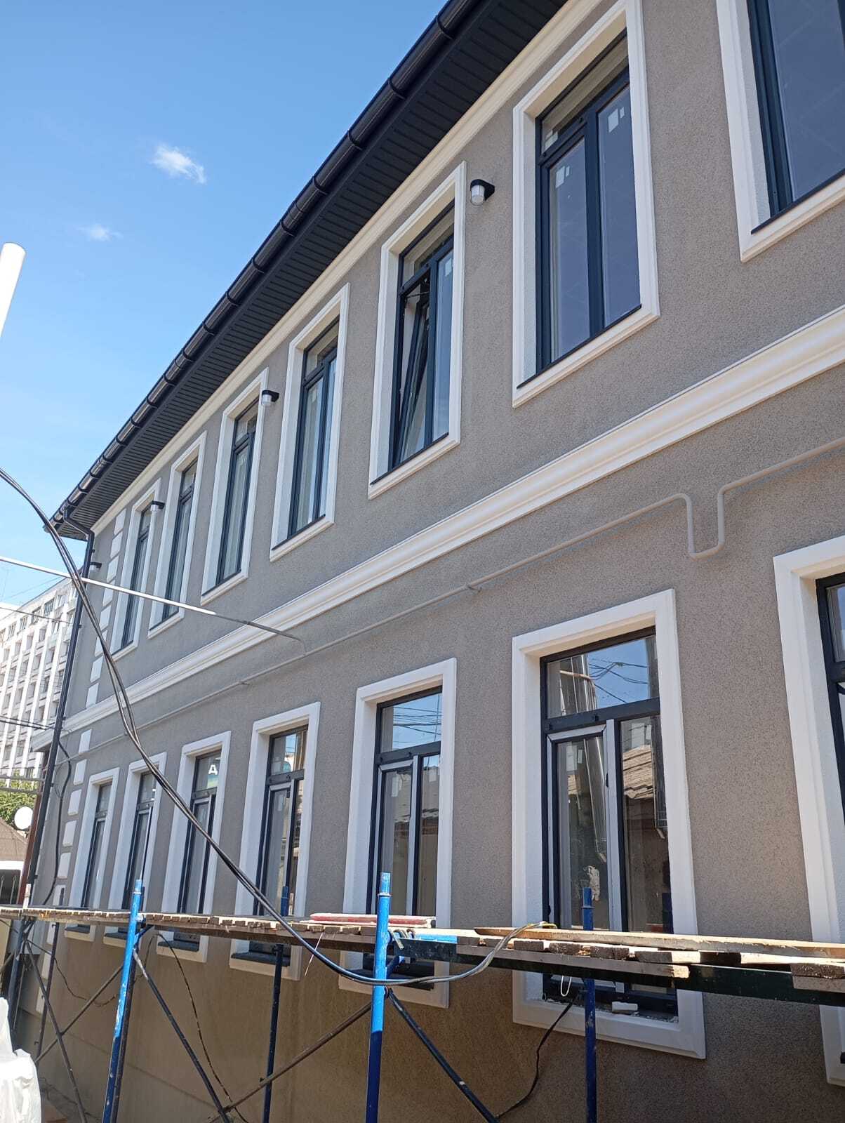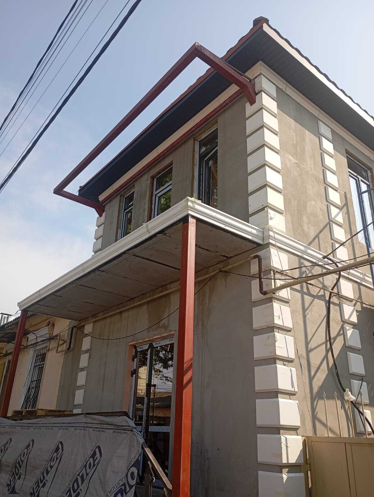 Реконструкция двухэтажного здания в Симферополе. Встретились на объекте с партнёром, приложили образцы к фасаду, сделали замеры, расчёт и согласовали смету. Основной комплект — готовые изделия со склада, плюс индивидуальные детали на две колонны при входе. Поставили и смонтировали без задержек.