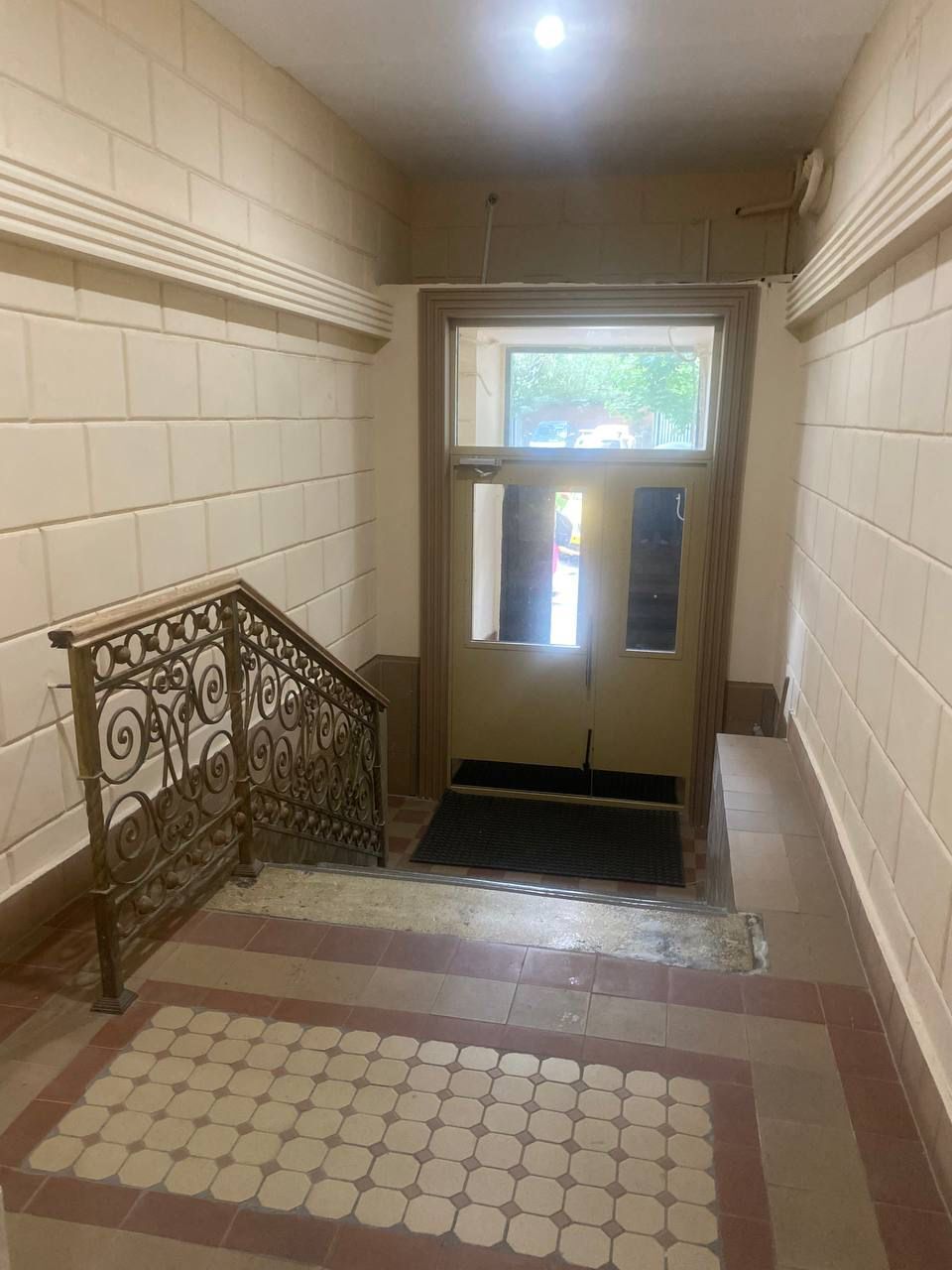 - Привели отделку к спокойной тёплой гамме, чтобы обрамления связались с существующей отделкой подъезда.